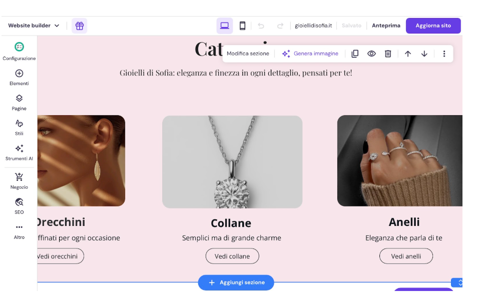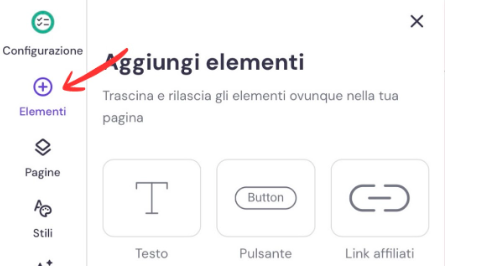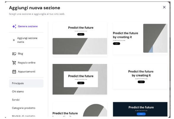 Inoltre, il website builder offre elementi standard necessari per un sito web, come testo, immagini e pulsanti.
