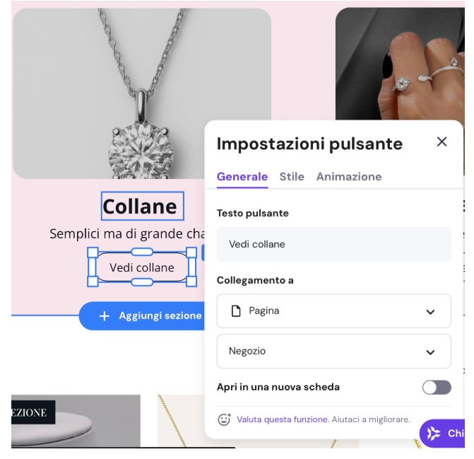 Per quanto riguarda gli strumenti di marketing, il web builder risponde di un AI Writer integrato per arricchire il tuo sito con testi accattivanti e SEO-friendly.