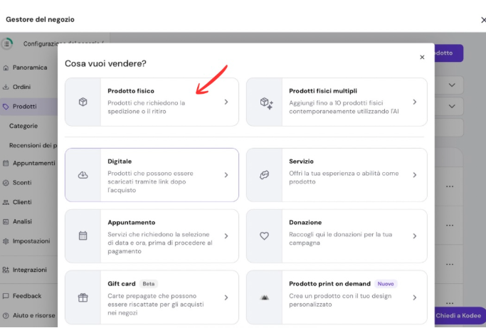 3 . Scegli quale tipo di prodotto vuoi vendere. In questo caso io andrò a scegliere il prodotto fisico, perché è un negozio di gioielli